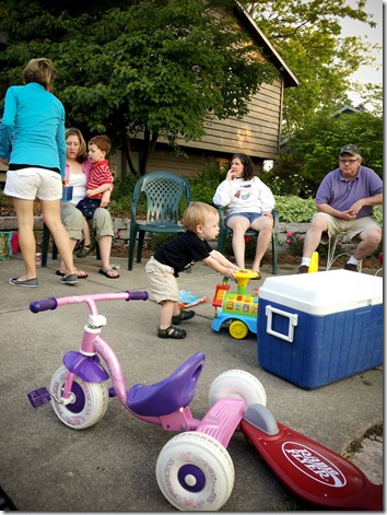 Sunday: Day 148: Jay’s aunt had a birthday party for her little man, Quinn, and we all celebrated together! It was a fun and gorgeous day! Another perk of living so close, cherishing the small things!20120527_193123Monday: Day 149: The view out our living room window, bring on the football games this fall! We don’t even need to leave the comfort of our own home anymore!IMG_1513Tuesday: Day 151: We have a ‘Junk Drawer’ box! Original, huh?! Want to know what the contents of our junk drawer box usually consists of… hanging clips for the walls. Maybe we should label it that!IMG_1515Wednesday: Day 151: Relaxing and watching some TV on the couch all cuddled up on a cold morning.IMG_1516Thursday: Day 152: Had to get my May chalkboard picture in!IMG_1517Friday: Day 153: Had my bestie and her boyfriend over for a cook out one night and we had fun catching up!IMG_1522Saturday: Day 154: Our new friend… Mr. Toady!IMG_1539